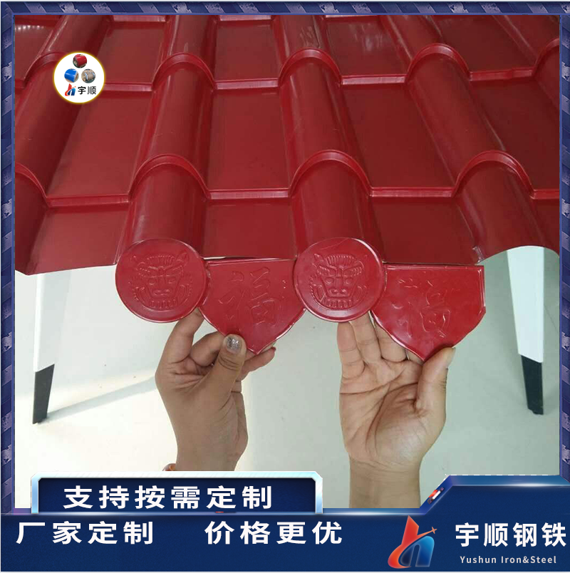相对古老烧制的琉璃瓦而言,彩钢仿古瓦拼装组合的方式更自由,外观更美观,施工的速度更快捷。 仿古彩钢琉璃瓦可广泛用于欧式别墅,旅游风景区,海滨寓所,度假村,花园式工厂,家庭及各种建筑的室外装饰。彩色压型钢板是采用彩色涂层钢板,经辊压冷弯成各种波型的压型板,它适用于工业与民用建筑、仓库、特种建筑、大跨度钢结构房屋的屋面、墙面以及内外墙装饰等,具有质轻、高强、色泽丰富、施工方便快捷、抗震、防火、防雨、寿命长、免维护等特点,彩钢仿古瓦现已被广泛推广应用。