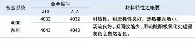 通常硅含量在4.5-6.0%之间,含硅量较高强度就相对较高,4000系列铝棒代表为4A01、4000系列的铝板属于含硅量较高的系列。汤流良好,凝固收缩少,属建筑用材料,机械零件,锻造用材,焊接材料; 熔点低,耐蚀性好,具有耐热、耐磨的特性。